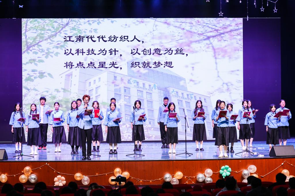 晚会以“聚光·织未来”为主题,寓意纺织专业汇聚智慧和创新,编织出更加美好的明天。节目分为“初光破晓·新启程”“时光织锦·燃青春”“星光追梦·绘未来”三个篇章,学院本科生与研究生携手共演,展现了青春洋溢、活力四射、梦想驱动及鲜明态度的艺术风采。