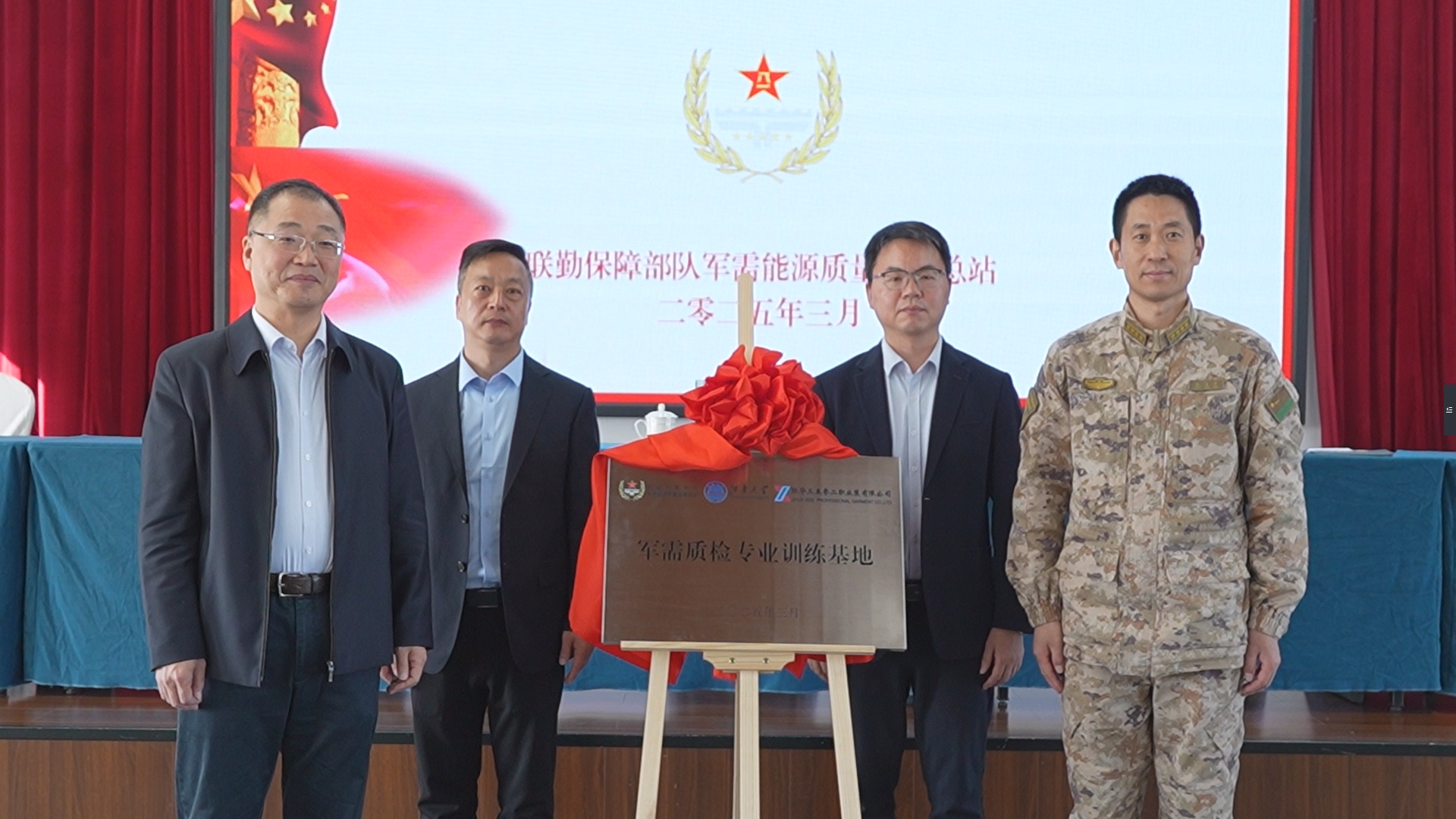 近日,联勤保障部队-江南大学-际华集团军需质检岗位轮训动员暨军需质检专业训练基地揭牌仪式在际华三五零二职业装有限公司举行。联勤保障部队某总站主任、际华集团股份有限公司总经理王学柱、江南大学纺织科学与工程学院副院长马丕波、际华三五零二职业装有限公司党委书记/总经理宋勇林等出席仪式并为基地揭牌。