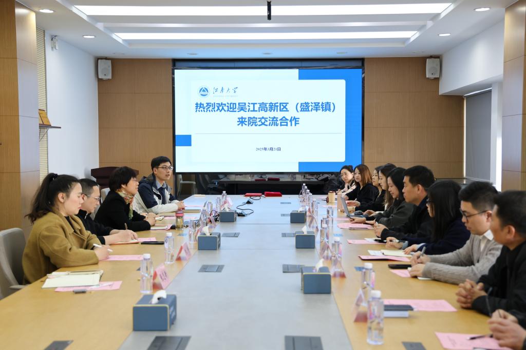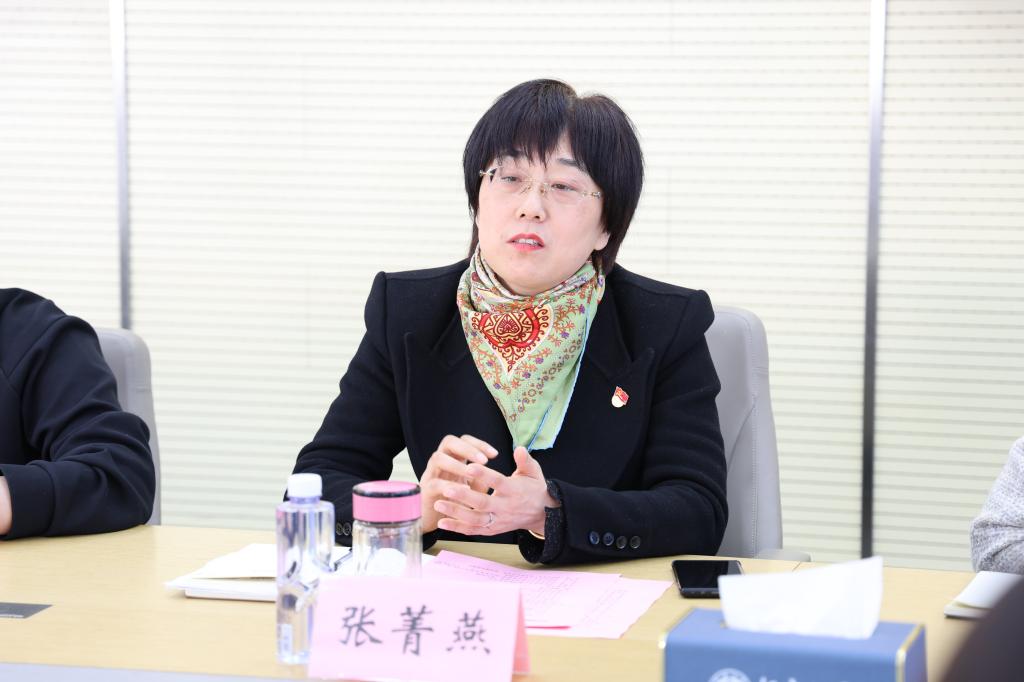 张菁燕首先对吴江高新区(盛泽镇)政府及企业一行的到来表示热烈欢迎,并简要介绍了学院的历史沿革、学科建设、人才培养、科学研究等方面的情况及近年来学院党委在对接产业链党组织中的重要举措和显著成效。她表示,学院高度重视与地方政府和纺织企业的合作,希望以此次座谈会为契机,持续发挥组织优势,促进创新链、产业链和人才链的深度融合,在人才培养、科技创新、成果转化等方面实现互利共赢。