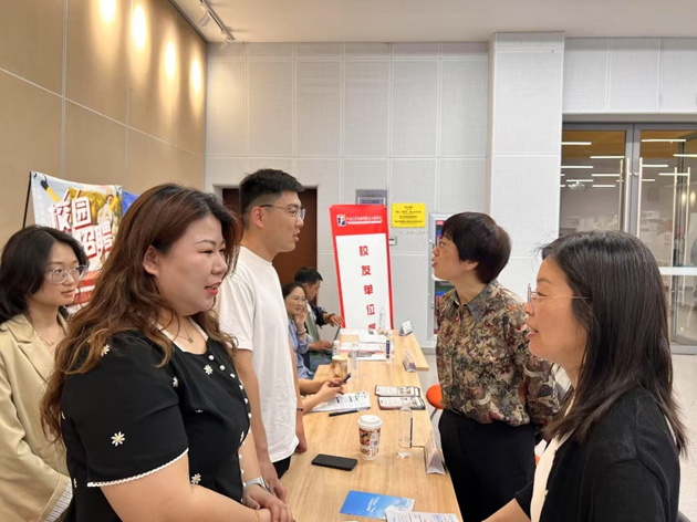 学院党委书记张菁燕,党委副书记、副院长杨莉勤,毕业班辅导员任学敏、张旭一行来到招聘会现场,与用人单位开展深入交流,详细了解用人单位招聘需求,听取用人单位对学校人才培养、就业服务的意见和建议,并与应聘毕业生亲切交流。