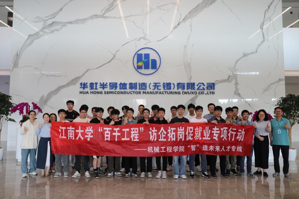 为贯彻落实教育部“访企拓岗促就业”工作部署,搭建毕业生与用人单位双向选择的交流平台,拓宽就业渠道,5月16日,机械工程学院赴华虹半导体(无锡)有限公司开展访企拓岗专项行动。活动主要包括企业展厅和生产车间参观、HR面对面、校友交流座谈等形式。学院党委副书记、副院长刘升恒带队,学院分团委书记、学工办主任李诗炜,就业负责老师与20余名2026届本、硕学生参加活动。