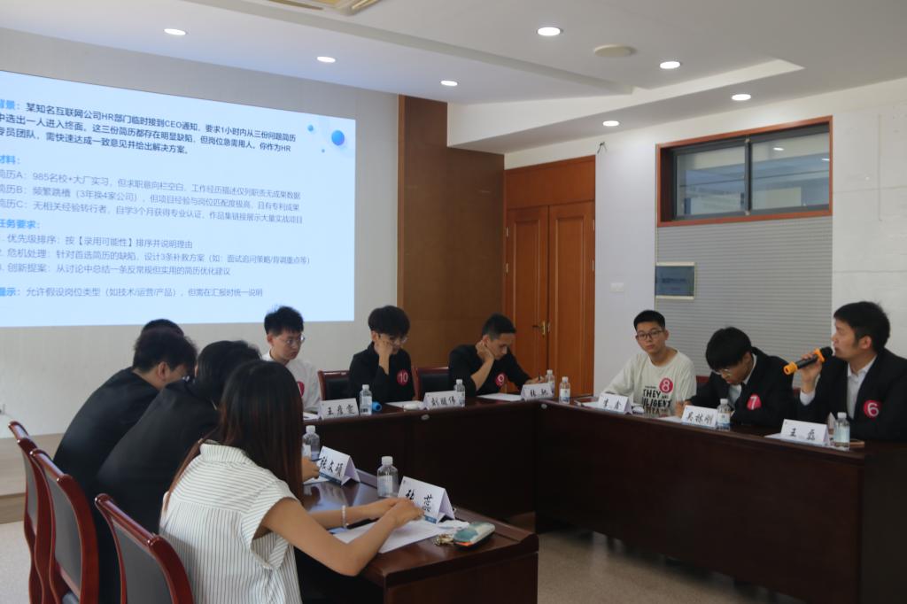 经前期宣传指导、学生报名、企业HR评委简历打分等环节,共有10名选手参加现场决赛。决赛分为“个人面试”与“群体面试”两个环节。个人面试中,参赛选手围绕简历从学业发展、创新项目、校园经历、实习经历等方面进行个人展示,评委聚焦学生的目标岗位、结合简历内容进行提问,与学生交流互动。群体面试采用无领导小组讨论形式,重点考察选手们的组织协调能力、口头表达能力,辩论的说服能力等。综合两个环节的学生表现,王彦雯获大赛一等奖,刘朋伟、吴林刚、王磊获二等奖,李鑫、张文硕、张驰获三等奖。