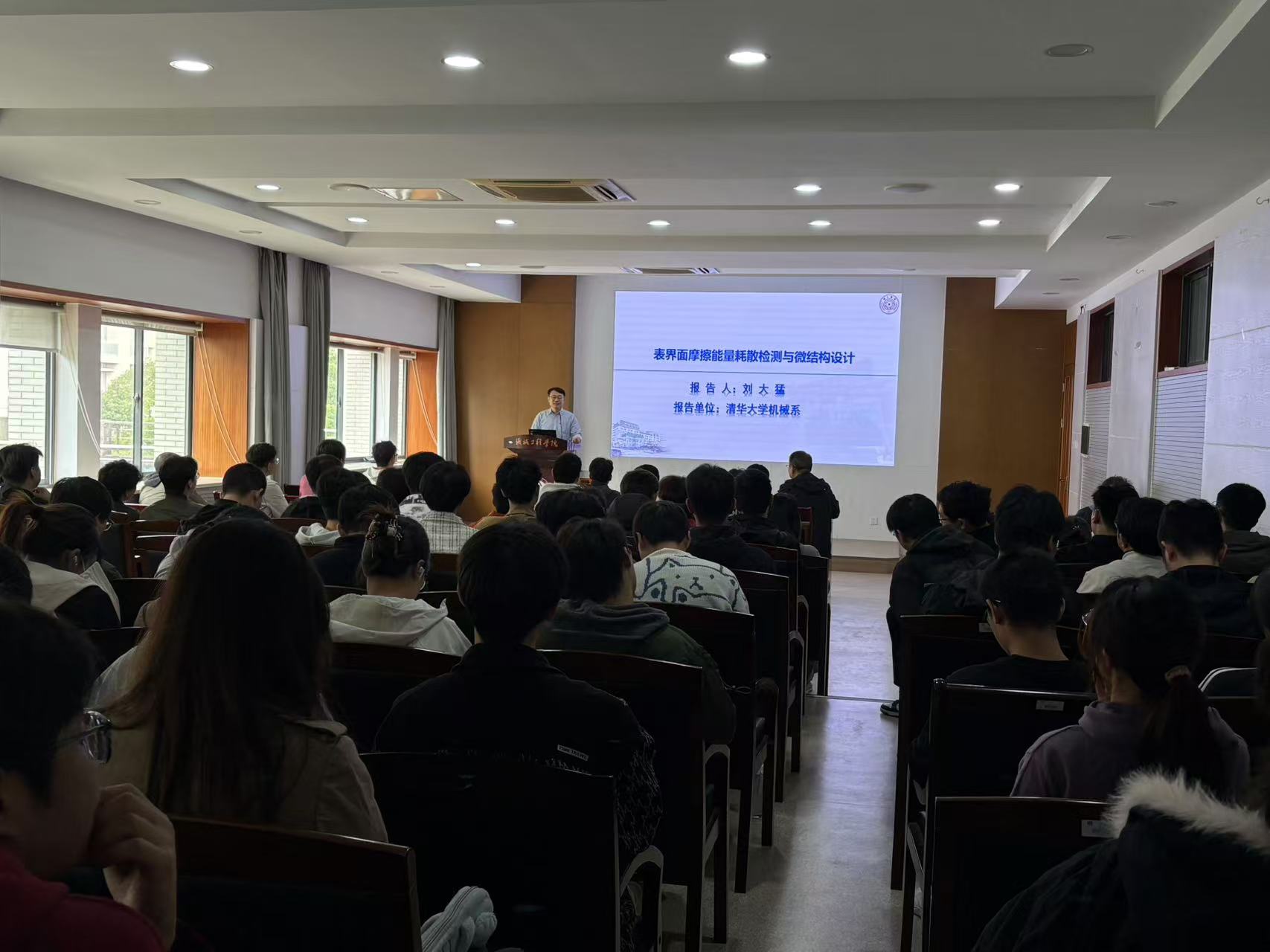 10月25日下午,“机缘大讲堂”系列要闻第二十七讲在机械楼C302报告厅举行。国家高层次人才、清华大学长聘教授、高端装备界面科学与技术全国重点实验室刘大猛教授应邀来机械工程学院访问交流,并做了题为《高端装备表界面能量耗散机理与调控》的学术报告。报告由机械工程学院副院长钱善华主持,学院师生代表100余人聆听了报告。