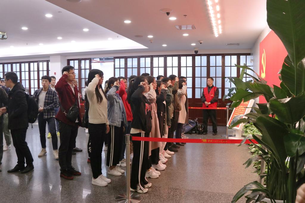 上午10点左右,全体党员同志抵达了中国共产党的诞生地——中国共产党第一次全国代表大会会址纪念馆,在“伟大开端——中国共产党创建”历史陈列馆内,全体党员在袁励红的带领下面向党旗,庄重地举起右拳,集体宣读入党誓词。