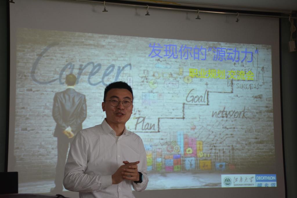 就业于迪卡侬公司的优秀校友陈博给在场师生带来了一场精彩讲座。他表示,世界上没有最好的职业,只有自己热爱且适合自己的职业:一份好的工作需具备热爱、擅长、需求、报酬四个因素。同时,他要求在座同学做到“把握当下,展望未来”,早日明确今后的发展方向,为今后找到合适的工作打下坚实的基础。