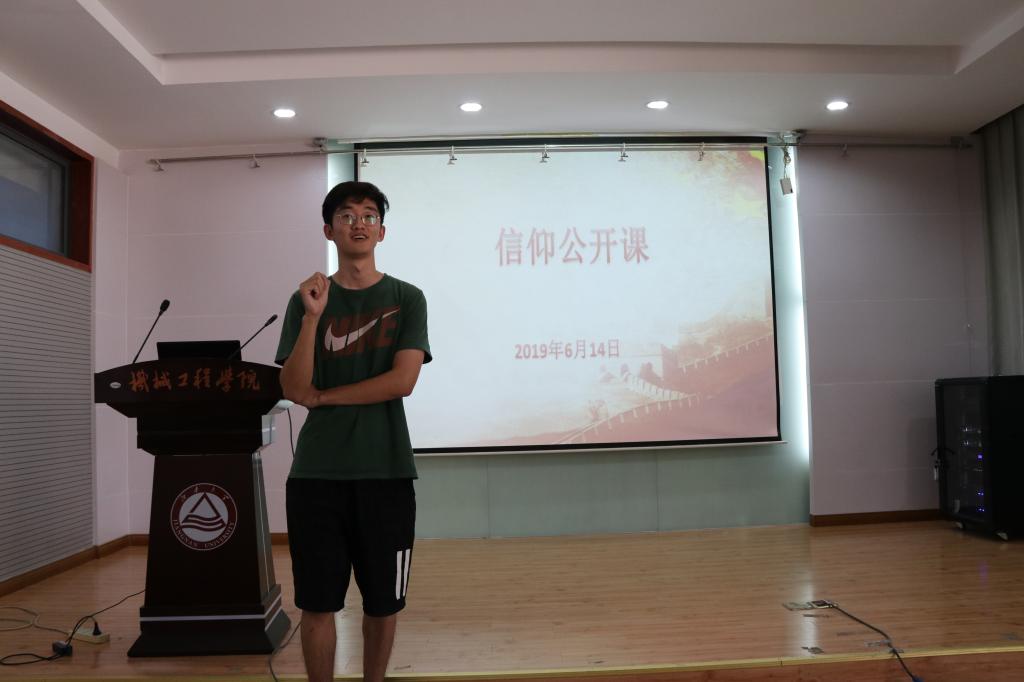 交接仪式结束后,由机电1602团支部的张春宇同学为在场学生带来了一场精彩的信仰公开课。作为君远学院机器人俱乐部队长、9月份即将前往美国交换的张春宇从自身经历出发,提出了规划和努力的重要性。他建议度过考试周的同学结合目标,依托实际、依托努力,尽力去实现它,切勿荒废光阴,要为自己负责。在场同学对张学长所说感触颇深,纷纷举手提问,展开积极互动。