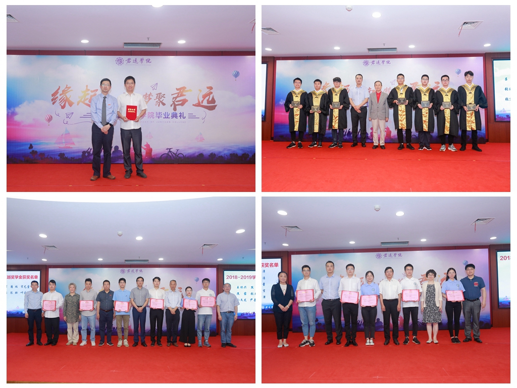 为鼓励君远师生在工作和学习中锐意进取,奋发努力,学院评选出2018-2019学年君远学院卓越奖学金12人,单项奖26人和2019年君远优秀奖两名。与会嘉宾为获奖师生颁发证书,并合影留念。