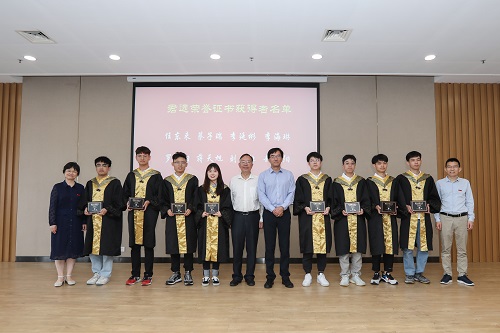 赵军华首先讲话,他充分肯定了同学们在大学四年从本科课本知识到科创比赛中所取得的不菲成绩,也对同学们提出了“坚守理想,坚定信心”“把握机遇,勇敢向前”“奋斗拼搏,放飞青春”三点期望。最后他暖心提出希望毕业学子可以常“回家”看看,并祝福同学们前程似锦。随后各位领导嘉宾为获得君远荣誉证书、君远卓越奖教金、君远卓越奖学金、君远单项奖学金等获奖师生颁发证书并合影留念。