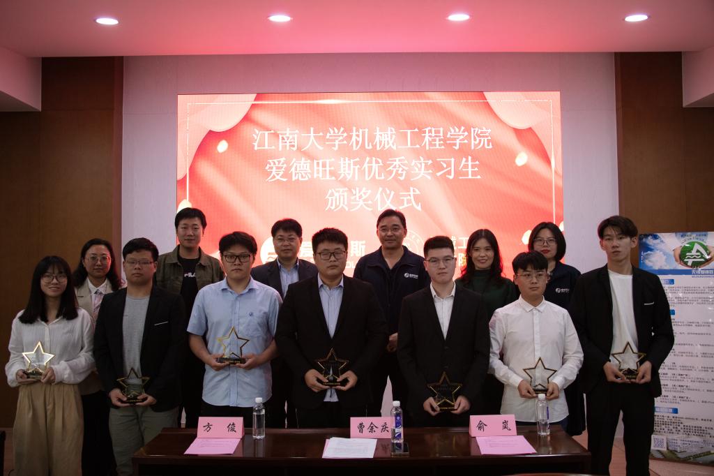 接着,俞岚宣读获奖同学名单,并向他们表示了由衷的祝贺,曹余庆和方俊为获奖学生颁奖并合影留念。随后,优秀实习生代表徐显平发言,他表示通过此次实习,对自己的专业有了更为详尽而深刻的了解,会继续努力,奋斗拼搏,勇攀高峰,并对无锡爱德旺斯科技有限公司表达了感激之情。