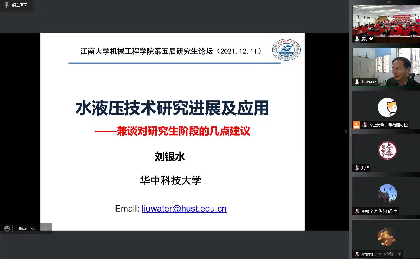 开幕式结束后,举行第一次特邀专家学术报告会,本次论坛嘉宾报告采取线上形式。徐九华作题为“航空发动机制造技术发展”的线上学术报告,重点介绍了我国的航空发动机制造技术的现状、存在的问题和差距,并对将来的研究提出了展望。刘银水作题为“水液压技术研究进展及应用”的学术报告,详细介绍了我国海、淡水液压驱动与传动技术以及控制阀等基础单元的研究现状。潘曹峰作题为“新型电子皮肤与机器人触觉”的学术报告,展示了构筑机器人触觉系统的全链条研究中的重要研究成果及展望。