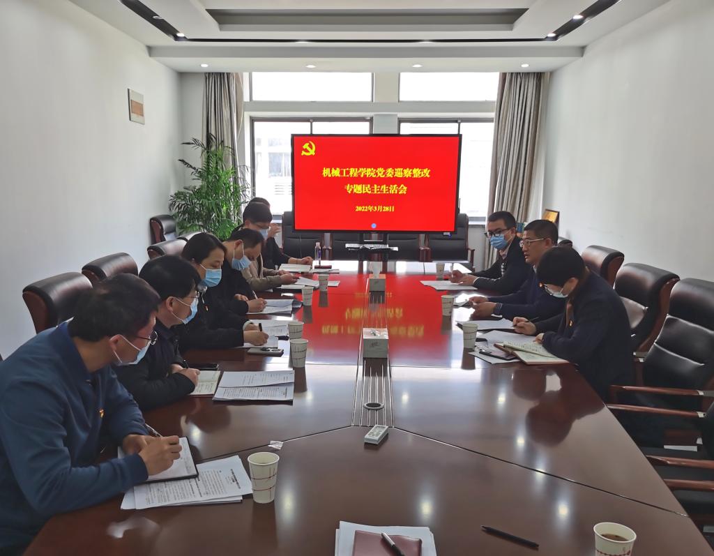 根据学校党委巡察工作统一部署,结合校党委第三巡察组对机械工程学院党委的巡察情况反馈意见,3月28日下午,机械工程学院党委在学院E404会议室召开巡察整改专题民主生活会。校长陈卫,校纪委副书记、纪委办公室主任、监察处处长李佳敏到会督导,机械工程学院全体党员中层干部参会,会议由院党委书记高雪梅主持。