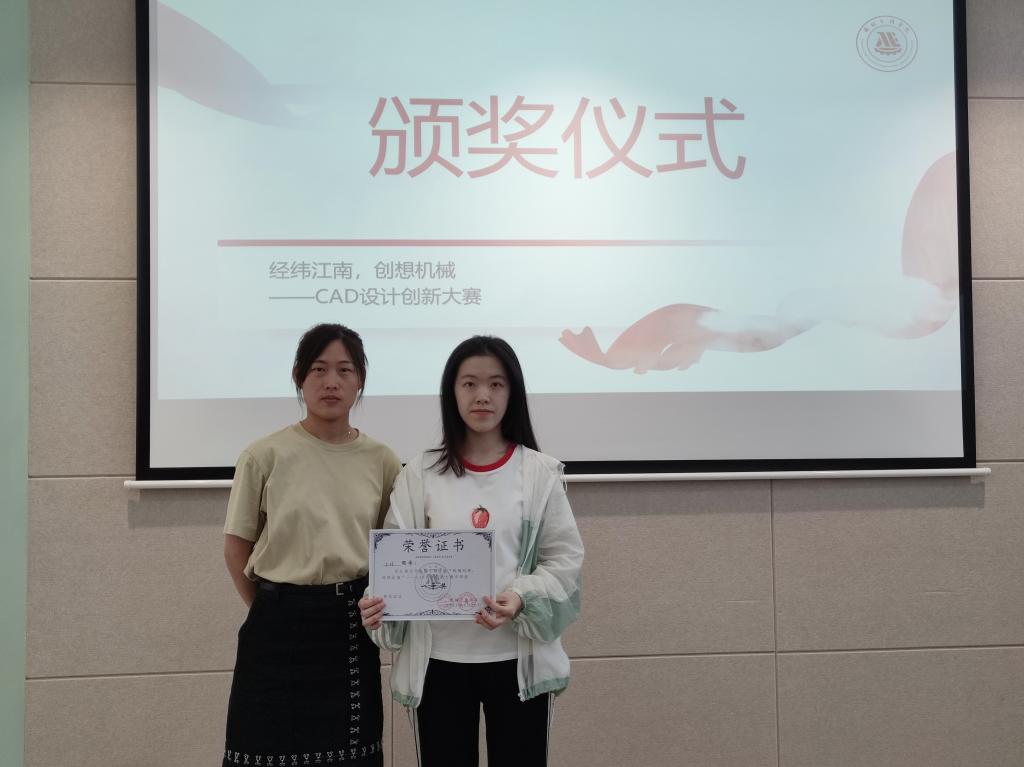为提升学院竞赛水平,适应学院发展新趋势,加强活动传承与创新,打造学院特色品牌活动,同时也为了增强学生科学创新能力以及实践能力,调动学生参加科技创新类竞赛的积极性,促进学生之间互助交流,使学生共同学习、共同进步的学习氛围蔚然成风,5月7日-15日,机械工程学院分团委主办,机械工程学院学生会科创活动中心承办的首届机械工程学院首届“经纬江南,创想机械”CAD设计创新大赛圆满结束,本次大赛共有75名同学报名参加。5月31日下午,大赛颁奖仪式在机械楼B308会议室举行,机械工程学院分团委书记孟召双,2019级辅导员萧欣彤参加。