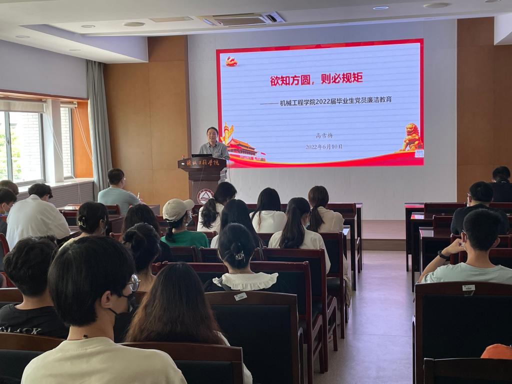 眷眷之心,拳拳服膺。为进一步加强毕业生党员党性修养,让他们心怀坚定信仰与远大理想走向新的人生奋斗阶段,6月10日下午,机械工程学院召开了2022届毕业生党员主题教育大会。本次主题教育由学院党委书记高雪梅主讲,学院分团委书记孟召双、辅导员孟飞、余骏皓,以及95名毕业生党员参加了此次会议。会议由孟召双主持。