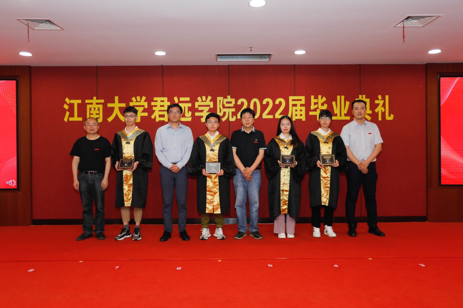6月16日上午,江南大学君远学院2022届毕业典礼在我校图书馆五楼报告厅举行。无锡市委统战部副部长、侨办主任、君远学院理事会理事赵俊明,上海唐君远教育基金会理事、原江南大学副校长王武,上海唐君远教育基金会理事唐建年,江南大学党委常委、副校长、君远学院理事会理事长堵国成,校党委常委、宣传部部长倪松涛,学生工作部部长张菁燕,教务处处长徐学明,招生就业处处长赵建新,社会资源处处长黄敏,党委统战部副部长王冰等领导和嘉宾,以及机械工程学院、君远学院班子成员和部分教师代表参加了典礼仪式。学院辅导员高鑫主持仪式。