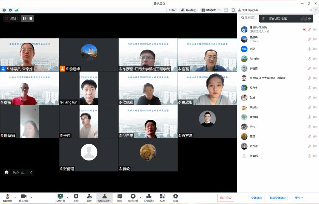 曾获“江南大学优秀班主任”荣誉称号的俞建峰、宿磊两位老师从班主任工作理念、实际工作案例分享了自己的班主任经历。俞建峰从四个方面聚焦班主任职责:引导学生对大学生活树立正确观念、指导班干部管理好班级、引导学生树立正确的升学就业观念、关心班级困难同学,并综合新时代大学生成长特点与大学生发展的新形势,给出了具体可行的指导建议。宿磊分享了班主任工作的三心:爱心、关心、用心。他表示,爱心是关心与用心的基础;关心不只局限于学习,还包括生活、家庭、人际处理等;用心是指要从学生成长出发,切实帮助学生设计规划自身发展。