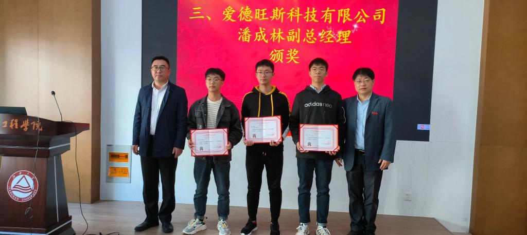10月29日下午,机械工程学院2022年度“爱德旺斯”实践奖学金颁奖仪式在机械楼C302会议室举行。无锡爱德旺斯科技有限公司副总经理潘成林、人事经理陈美杰,机械工程学院党委副书记方俊、辅导员冯亚东及30余名学生代表参加了本次仪式。