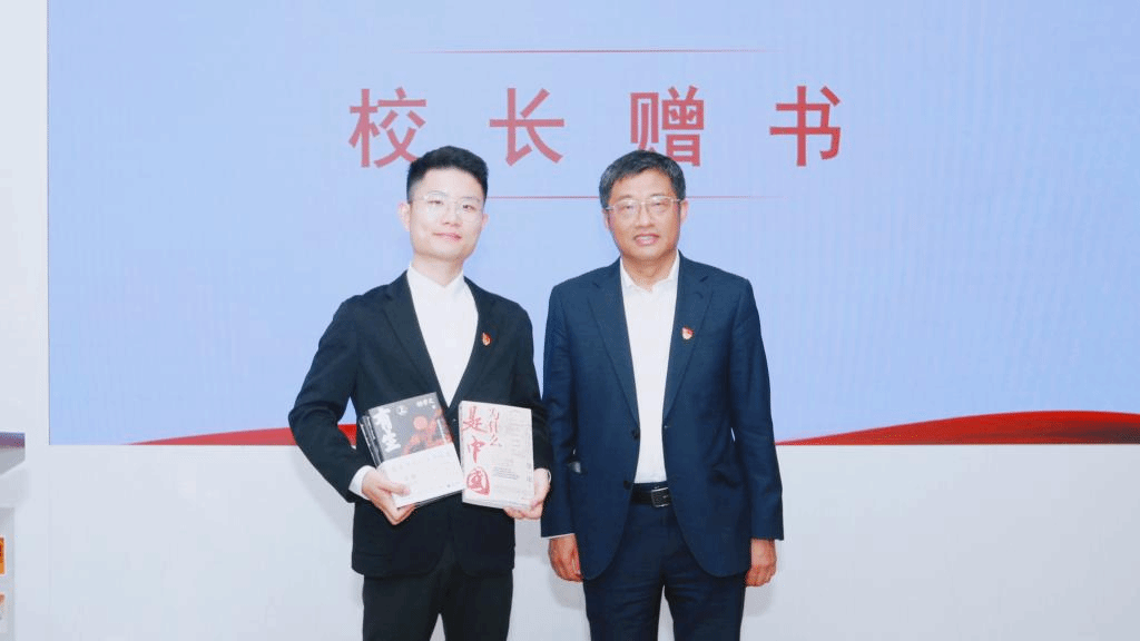 理论学习结束后,进行了赠书仪式。陈卫向研究生党支部赠送了亲笔寄语的《为什么是中国》《有生》等书籍,希望机械学子能够矢志不渝,笃行不怠,在制造强国、科技强国的道路上作出新时代青年的积极贡献。