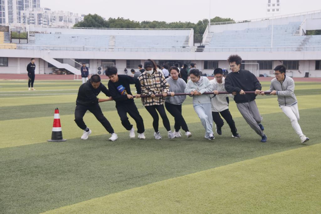 本次新生趣味运动会暨田径选拔赛中,各学院代表队分为两组。上午举行田径选拔赛。运动员们摩拳擦掌、跃跃欲试,以最饱满的热情全身心投入比赛。跑道上的争分夺秒,跳高场地的矫健身姿,跳远场地的腾空而起,他们飒爽的英姿成了体育场中最靓丽的风景线。下午的趣味运动会更注重团队的协作能力。体育场上,运动员们喊着铿锵有力的口号,迈着整齐如一的步伐,怀揣着坚定不移的信念,在旋风跑、同心鼓、花毽围踢等项目中迎难而上,不畏强敌。整场比赛热火朝天,妙趣横生。