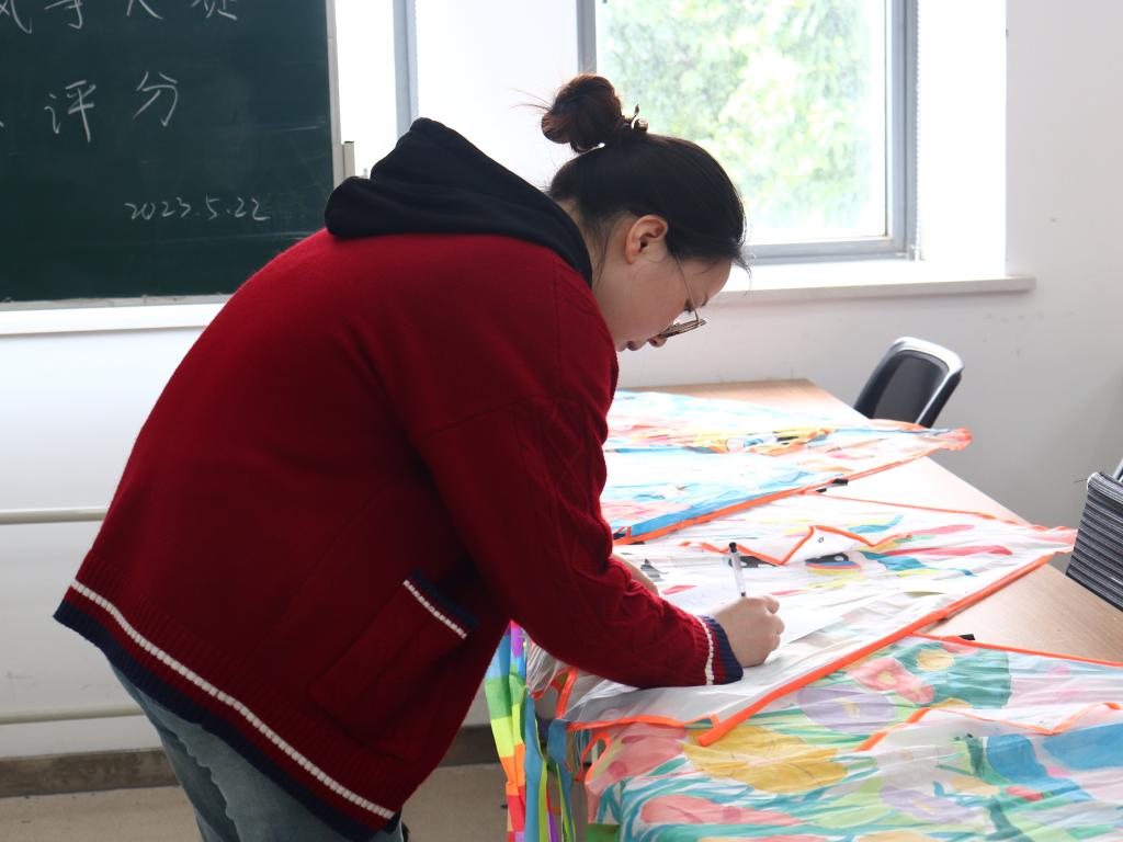 5月22日,在机械楼B308会议室的DIY创作评分现场,评委们从颜色搭配、图案创新和设计理念等方面对参赛选手提交的风筝作品进行评分。孟召双对学生通过风筝展示出的丰富想象力及对生活的美好憧憬表示了赞赏与肯定。她提出,本次风筝大赛设计主题不限,同学们的创意与想象力得到了充分的展示,对美好事物的热爱、对未来生活的憧憬都通过一只只风筝呈现出来。最终机械学院“立大功汪汪队”获得一等奖,生物工程学院“舒晴小冰梅队”、机械学院“乘风队”分获二、三等奖。至此,第二届“江南春·纸鸢齐”风筝大赛圆满落幕。