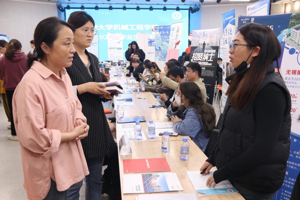 招聘会现场气氛热烈,求职学生纷纷向意向单位积极投递简历,详细了解企业概况、职位需求和发展前景等情况。部分企业进行了现场面试,和学生初步达成签约意向。机械工程学院在招聘会现场设置简历优化专区,为现场求职学生提供求职指导,致力于精准服务学生,提升学生求职竞争力。