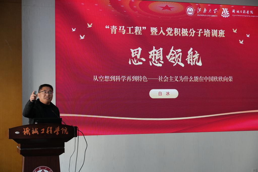 为深入学习贯彻习近平新时代中国特色社会主义思想,培养一批理想信念坚定的新时代青年马克思主义者,机械工程学院“青马工程”暨入党积极分子培训班理论培训。马克思主义学院副教授白冰、优秀青年学生代表受邀进行专题分享,学院党委副书记、副院长刘升恒及百余名培训班成员参加活动。
