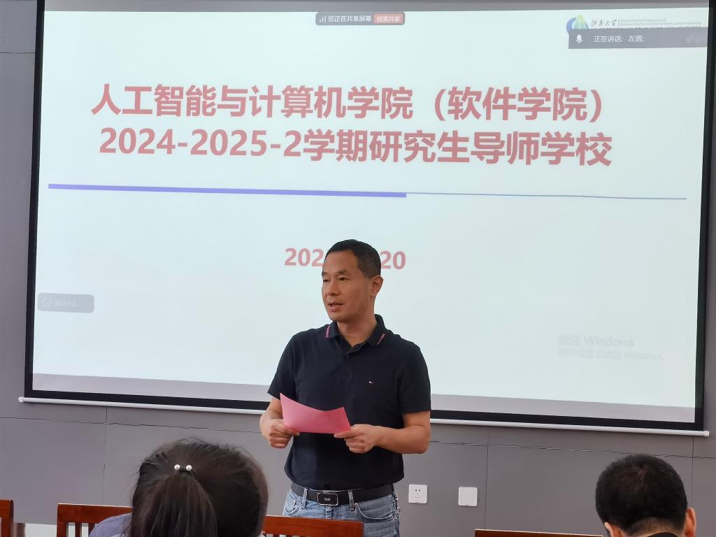 6月20日下午,人工智能与计算机学院在学院B310会议室举办2024-2025-2学期导师学校。学院全体研究生导师、协助指导研究生的年轻博士教师以及西安电子科技大学姬红兵教授等参会并参与交流。学院分管研究生工作的副院长谢振平教授主持会议。