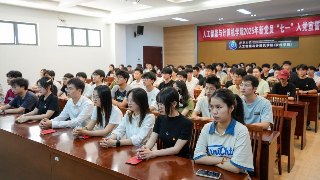 为庆祝中国共产党成立104周年,教育引导新党员坚定理想信念、牢记初心使命,7月1日下午,人工智能与计算机学院在B310报告厅举行2025年新党员“七一”入党宣誓仪式。无锡市关工委报告团成员张发海、丁冠民、尹斌,学院关工委常务副主任曹秋萍,关工委委员滕颖、胡继红、袁励红,学院党委副书记兼副院长王莉莉、专职组织员缪可嘉出席仪式,活动由党建辅导员戴士焱主持。