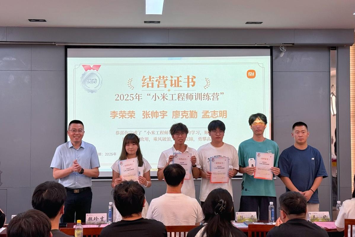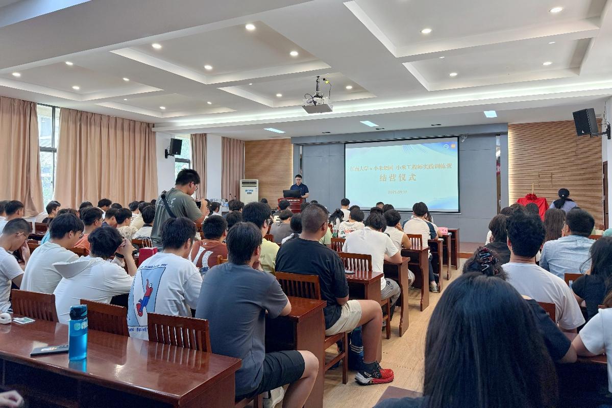 9月17日下午,江南大学-小米集团小米工程师实践训练营结营仪式在人工智能与计算机学院B310会议室举办。小米工程师训练营总负责人刘飞、策划负责人陈磊,江南大学人工智能与计算机学院党委书记魏珍吉,党委学生工作部副部长蒋洁,物联网工程学院党委副书记、副院长吴妍,人工智能与计算机学院党委副书记、副院长王莉莉,人工智能与计算机学院2026届毕业生辅导员麦日帕提·马热木、张海月及全体结营学员出席结营仪式。仪式由人工智能与计算机学院辅导员米宁主持。