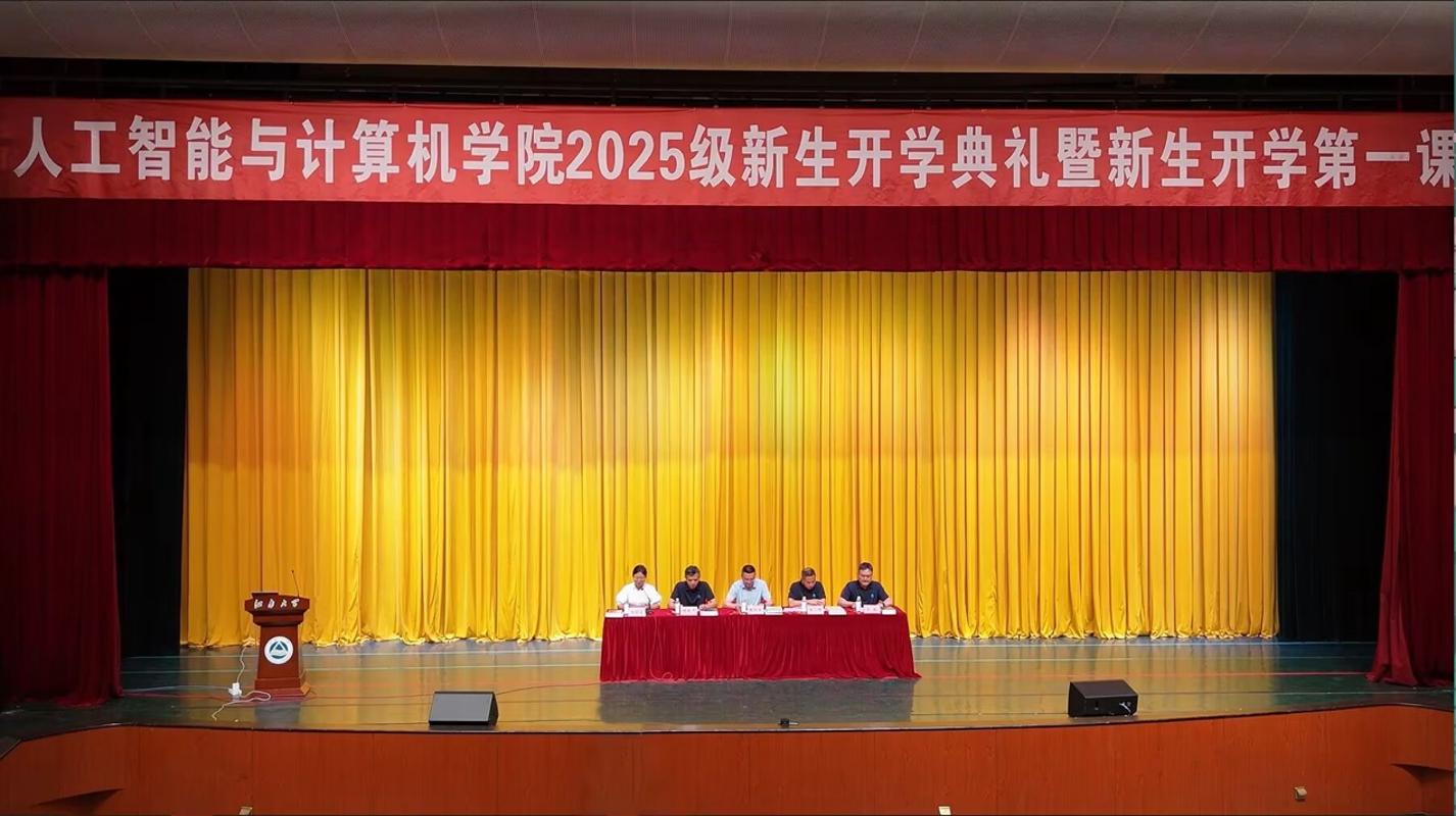 9月17日晚,江南大学人工智能与计算机学院2025级新生开学典礼暨开学第一课在文浩馆举行。无锡师范学院高等专科学校党委书记陈琳,学院党委书记魏珍吉、院长方伟、副院长谢振平、副院长宋威、计算机系主任刘建军、人工智能系主任刘立、教师代表徐天阳,各班级班主任,年级辅导员及全体新生参会。本次会议由学院党委副书记兼副院长王莉莉主持。