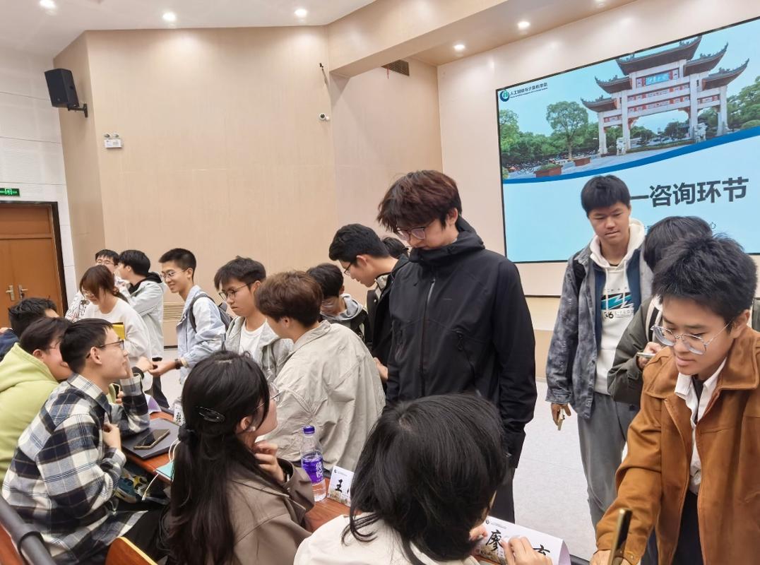在一对一咨询环节中,同学们热情高涨,围绕学业规划、竞赛实践、升学就业等核心问题,与学长学姐展开深度交流。学长学姐们结合自身经验,耐心答疑解惑,将实用技巧与成长建议倾囊相授。现场互动频繁,思想的火花持续碰撞,有效解决了同学们的个性化困惑。