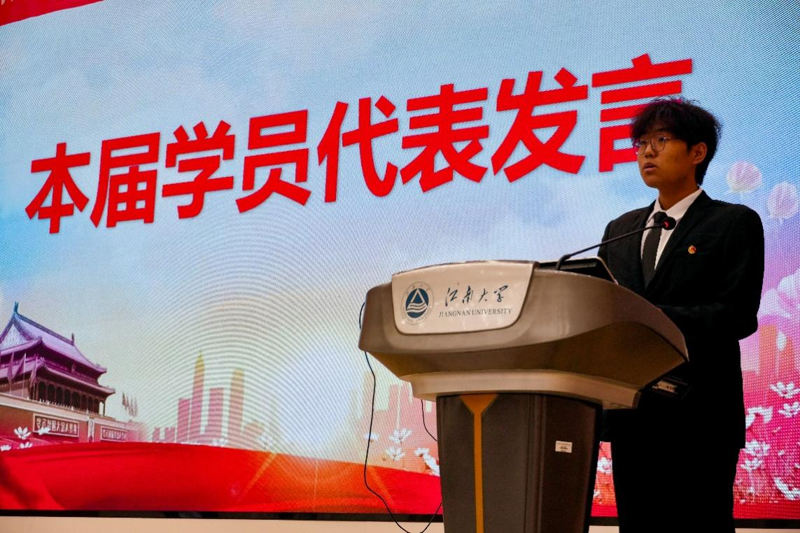 学员代表史鹏皓在发言中号召全体学员,要不断加强思想政治学习,持续增强实践能力,全面提升综合素质,以坚定的理想信念和扎实的实干担当践行青春使命,勇担民族复兴的伟大时代重任。全体学员庄严宣誓,以青春之名立下铿锵誓言,承智能担当、燃青春韶华、铸大国荣光。王莉莉为学员代表孔维嘉授班旗。旗帜的传递,不仅是仪式环节的交接,更象征着“青马工程”精神内核的传承,寄托着学院对全体学员的殷切期望与使命重托。