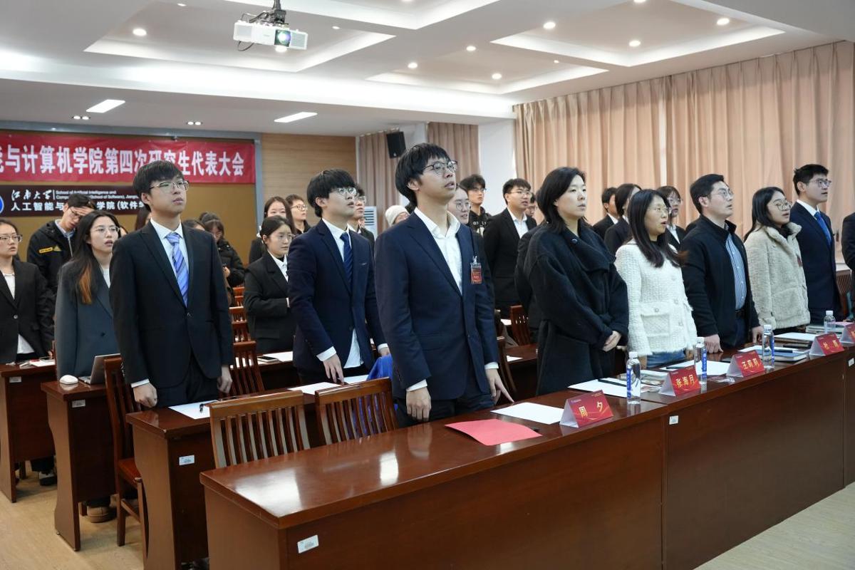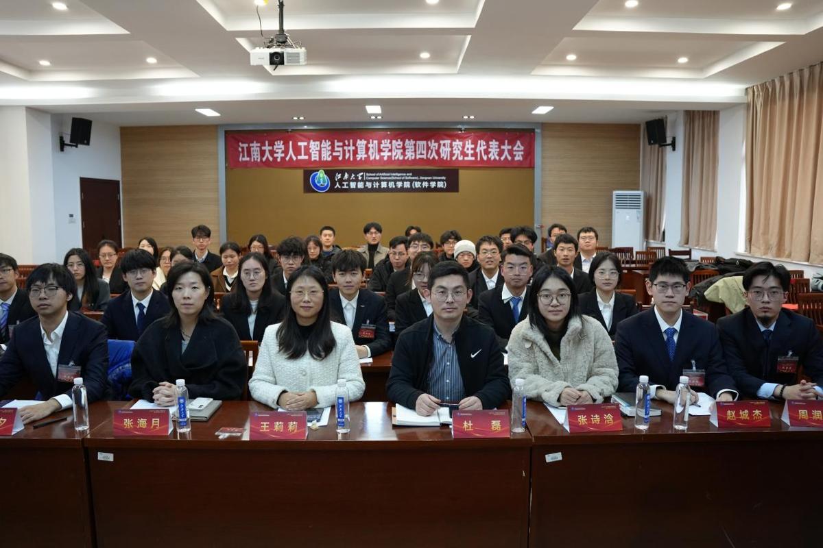 11月27日,江南大学人工智能与计算机学院第四次研究生代表大会在学院B310会议室顺利举行。学院党委副书记、副院长王莉莉,学院学工办副主任杜磊,学院硕士研究生辅导员张海月,学院2025级本科生辅导员张诗浛,第四届研究生会委员代表、第五届研究生会委员代表,以及34名研究生代表正式出席了此次大会。大会由研究生会主席周润泽主持。