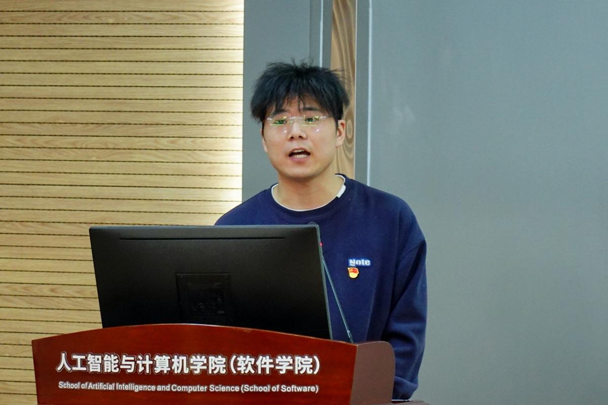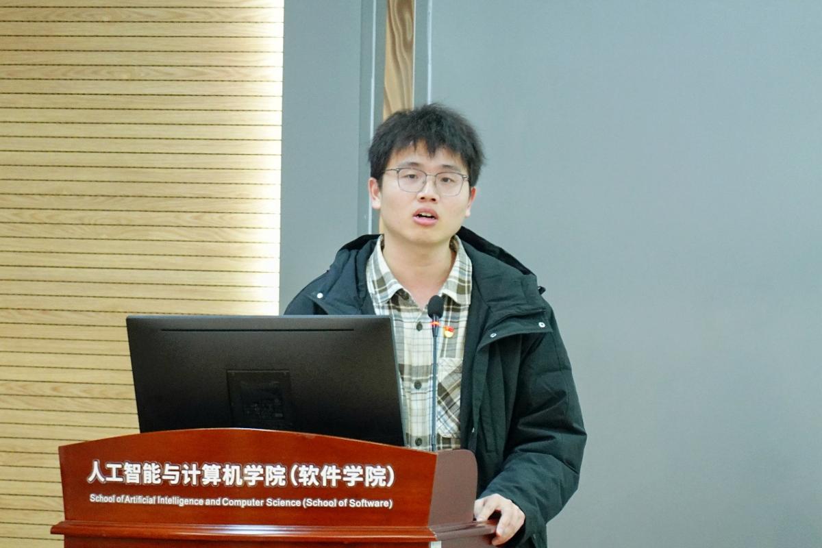 研究生第一党支部组织委员李民志汇报2025年支部工作情况。党支部书记张文杰以《学习贯彻党的二十届四中全会精神:聚焦“人工智能+”战略》为题讲主题党课,重点围绕未来五年国家在加快人工智能等数智技术创新,突破基础理论和核心技术等方面的部署,阐释了加快实现高水平科技自立自强的前进方向和实践路径,号召智能学子争做“原始创新”的攀登者、“科技强国”的建设者和“智能向善”的守护者,为国家科技创新接续奋斗。支部成员、2022级博士生程春阳以《我在江南读博的日子》为题分享其读博期间的科研生活经历和成长感悟。