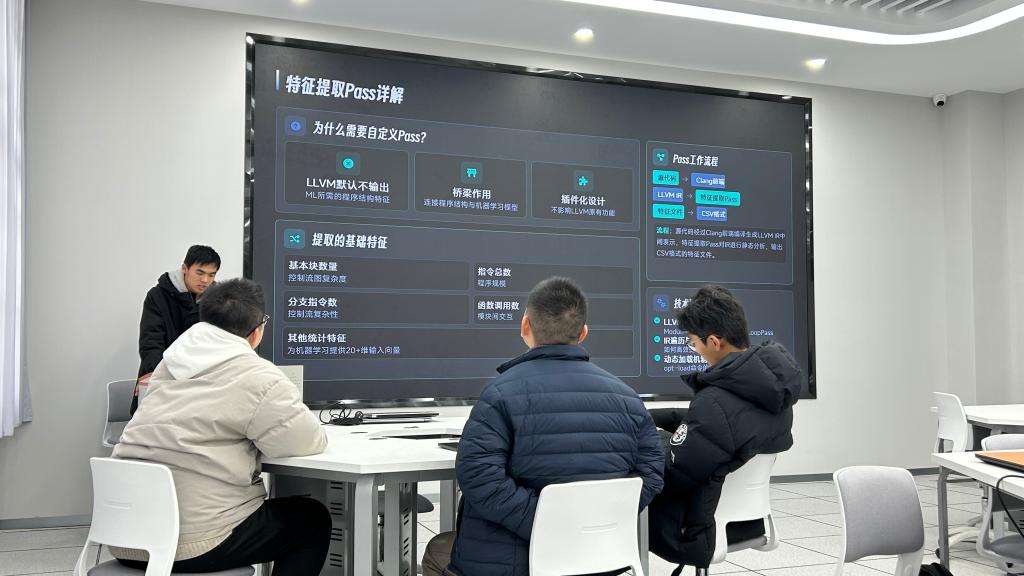 成果展示环节,各团队依次展示研究成果,详细汇报对国产处理器智能编译优化技术的理解及优化实践细节。评委团从技术实现、问题解决、沟通表达等多维度进行专业点评,对营员们在短时间内取得的突破给予高度评价。