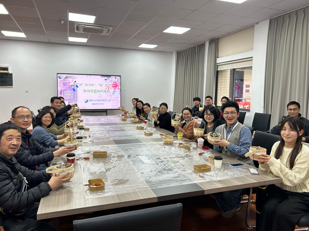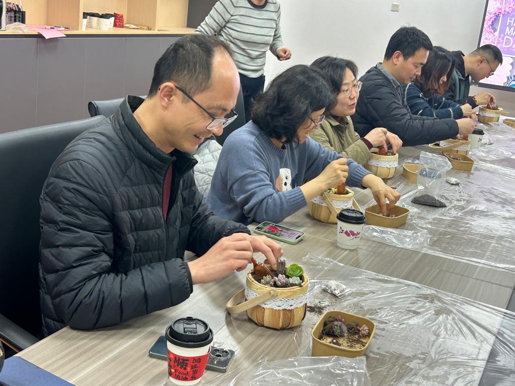 为庆祝第116个“三八”国际劳动妇女节,丰富教职工精神文化生活,营造温馨和谐、尊重关爱女性的节日氛围,3月5日下午,江南大学人工智能与计算机学院分工会在B320会议室举办了“‘植’此青绿,‘她’绽芳华——多肉花篮DIY体验”主题活动。全院50余位教职工欢聚一堂,在春意盎然中共庆属于“她”的节日。