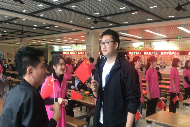 4月29日中午,学院合唱团成员在江南大学四食堂一楼、二楼就餐区进行了“我和我的祖国”歌曲快闪活动。《我和我的祖国》熟悉的歌声响起,优美的旋律似行云流水,漫过在场的每位观众的心头,合唱队成员们给在场师生纷发小国旗并齐唱歌曲,展现了数媒学院学生自信活泼、积极向上的精神风貌,并用歌声向祖国深情告白,