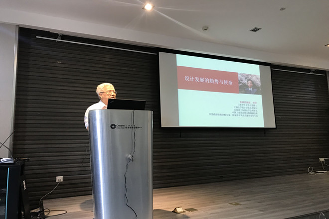 张福昌教授首先向大家讲述了自己与工业设计的故事,感谢改革开放,感谢党和国家、学校的栽培,将他派出国赴日本留学,并展示了他相关的学术成果。随后,张教授围绕设计的时代背景,设计与经济的关系、设计发展的趋势和特点以及设计师的责任与使命进行了细致精彩的讲解。报告中,张教授凭借其多年的设计经验与研究,引用大量的数据和案例,讲述了近现代设计的发展脉络、中国设计发展的方向以及文化强国,树立文化自信的紧迫性与重要性。