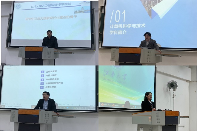 随后,蒋敏和邓赵红分别从计算机科学与技术和数字媒体技术两个专业的角度,介绍了学科特色和研究生培养方式,分析了本校学科的优势及导师们的研究方向,鼓励同学们积极报考本校。他们也强调考研一定要保持良好的心态,根据自身情况制定可行目标并为之持续努力。