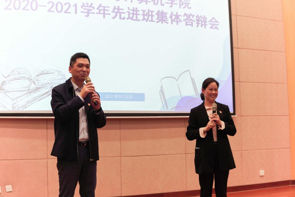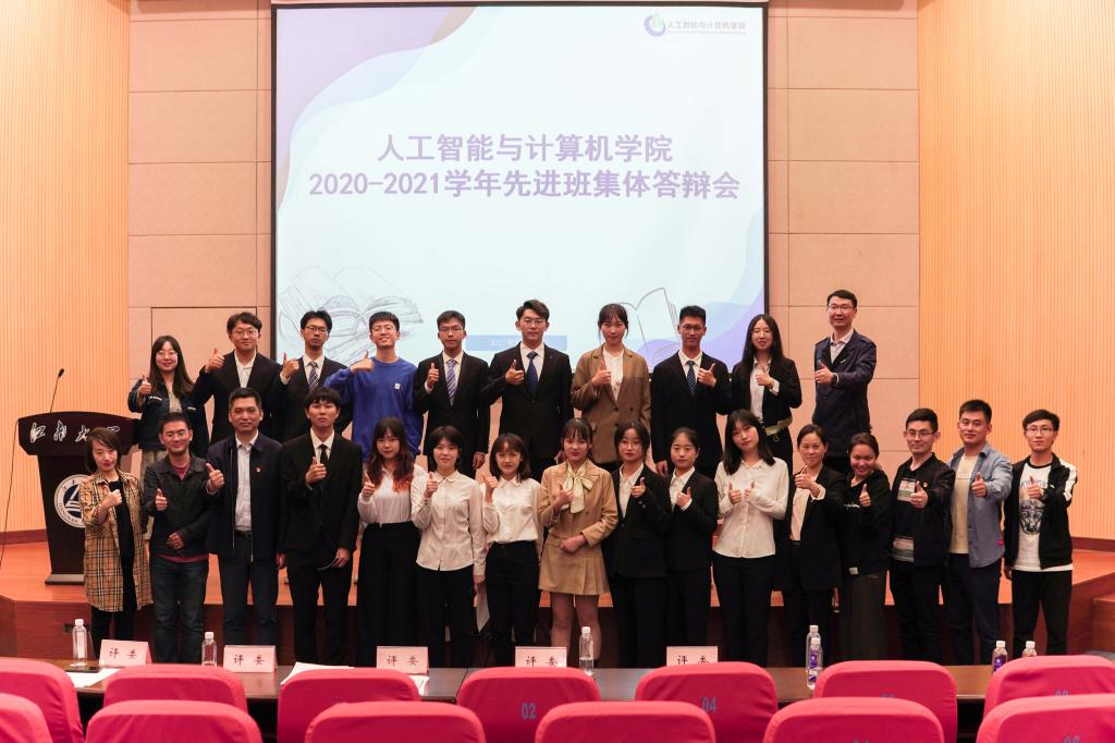 5月20日晚,人工智能与计算机学院2020-2021学年先进班集体答辩会在远东报告厅顺利举办。本次答辩会以“青春心向党,团结共奋进”为主题,旨在通过评比展示,弘扬优良学风,争创优良班风,培养学生团结奋进精神和集体主义观念,提升学生的综合素质。院党委书记张华、党委副书记陈祎、班主任辅导员代表莅临活动现场,分团委书记沈丹、辅导员杜磊、戴士焱、班主任代表李守强、陆恒杨担任评委。