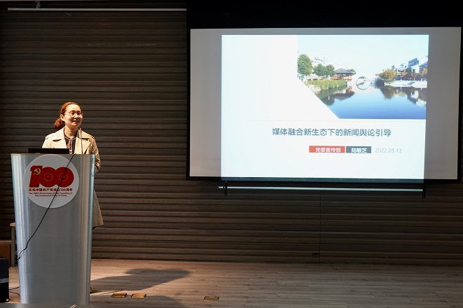 校党委宣传部副部长陆敏芝以《媒体融合创新新生态下的舆论引导》为题,阐述了新形势下融媒生态的新变化,应对融媒生态的新挑战,以及如何开展融媒生态下的宣传。报告深入浅出,生动易懂,对当前社会环境下宣传工作面临的新问题进行了总结和分析,并就如何做好宣传工作提出了建议、给出了指导。