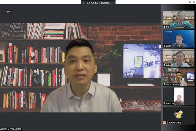 张华代表学院对嘉宾的到来表示热烈欢迎,对中国计算机学会的大力支持表示了感谢。他表示“AI江南大讲堂”是一项旨在提高科技视野、推进学科发展、加强学术交流,面向师生的学术交流系列活动。