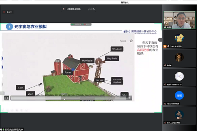 童咏昕介绍了CCF的概况及“CCF走进高校”系列活动的开展情况。彭绍亮围绕“基于超算的元宇宙算力与应用展望”这一主题进行了报告。从元宇宙概念背景、元宇宙算力基础、元宇宙特性要素、元宇宙与农业医疗等多方面展开讲解。超算、云计算和边缘计算等技术为元宇宙提供了算力基础,元宇宙涉及的应用领域包罗万象,未来健康医疗可能简单得就像打开微信一样,随时在线,元宇宙将彻底改变我们求医和健康生活方式。他特别强调,我们要让元宇宙插上想象的翅膀,运用中国人民的聪明才智建立起数字中国,虚实结合的元宇宙中国,构建高质量发展、绿色发展、和平发展的人类命运共同体,进而引领全球元宇宙。