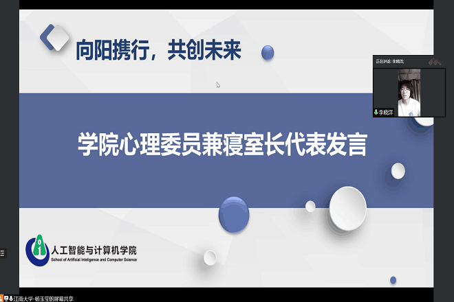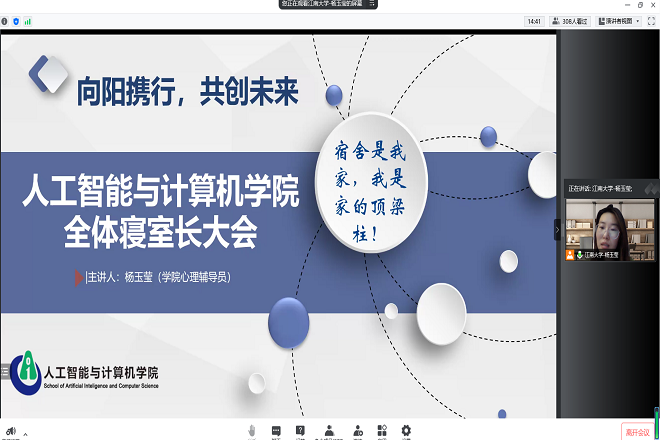 为进一步加强疫情防控期间宿舍的安全教育和管理,提升学院宿舍长队伍的整体素质和工作能力,保障全体同学的身心健康,人工智能与计算机院于5月23日晚在腾讯会议平台召开以“向阳携行,共创未来”为主题的全体寝室长大会。学院党委副书记兼副院长陈祎出席会议并讲话,会议由学院心理辅导员杨玉莹主持。