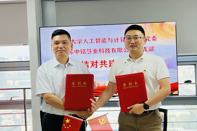 6月15日下午,学院一行来到中铭慧业科技有限公司,举行支部共建签约活动,学院党委书记张华、计算机教工党支部书记暨人工智能系主任宋威教授、专职组织员缪可嘉参加活动,活动由中铭慧业科技有限公司党支部书记孙祖清主持。
