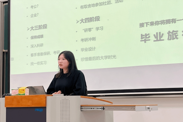 孟辰烨结合自身成长经历,围绕“大学什么样”“怎样度过大学”以及“为什么要来到大学”三个问题进行经验分享,讲述了自己在科研实践、学生工作、文体活动中的经历与感受,引导2022级新生科学进行职业生涯规划。最后,他提出三点建议:坚持运动、保持学习姿态以及广泛阅读,以积极向上的姿态迎接未来的生活。