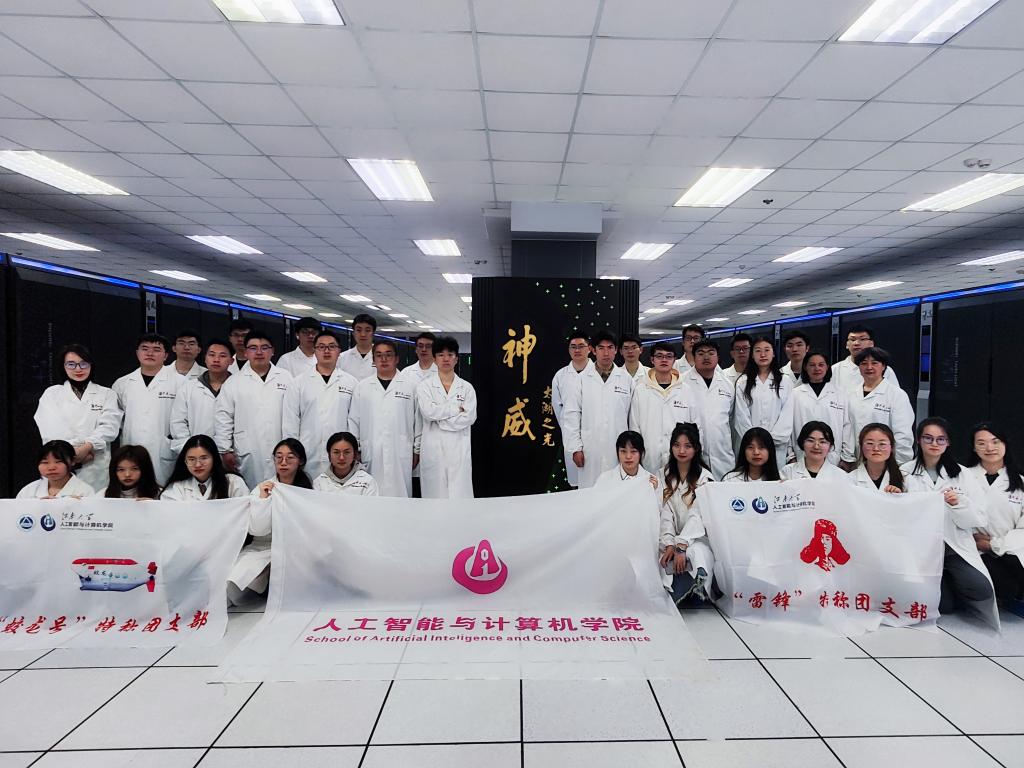 为实地体验我国自主创新科技实力,4月26日下午,人工智能与计算机学院特邀党建组织员曹秋萍、党委副书记陈祎、分团委书记沈丹及“雷锋特称团支部”“蛟龙号特称团支部”团员一行前往“神威·太湖之光”国家超级计算无锡中心开展主题团日活动。