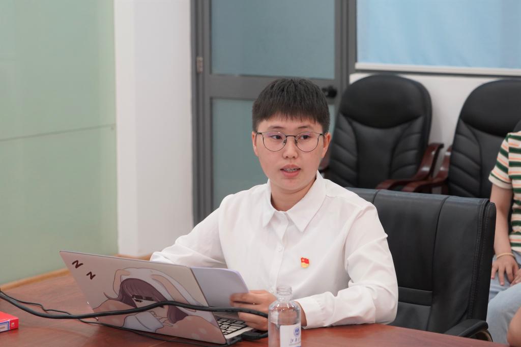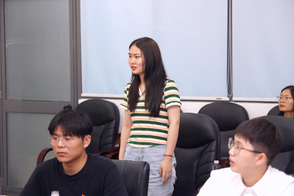 支部宣传委员郭林讲授微党课《习近平总书记与青年朋友》。她结合习近平总书记给中国农业大学科技小院的回信、江南大学校长陈卫在2023年毕业典礼上的讲话以及自身参与社会实践的经历,向同学们阐述了“自找苦吃”的精神内涵,表达了青年学生要传承“自找苦吃”的品质,勇担科技报国的责任;点面结合地介绍了《习近平与大学生朋友们》的内容,分享了自己的阅读收获,引发了支部党员们的现场的学习讨论。支部党员张文杰结合科技热点chatGPT,分享自己面对科技前沿挑战时的态度和立场,激励广大同学将“卡脖子”技术难题作为今后学习和突破的方向,迎难而上,为实现高水平科技自立自强贡献自己的力量。活动还设置了主题教育互动问答和为学院暑期重点社会实践团队授旗等环节。