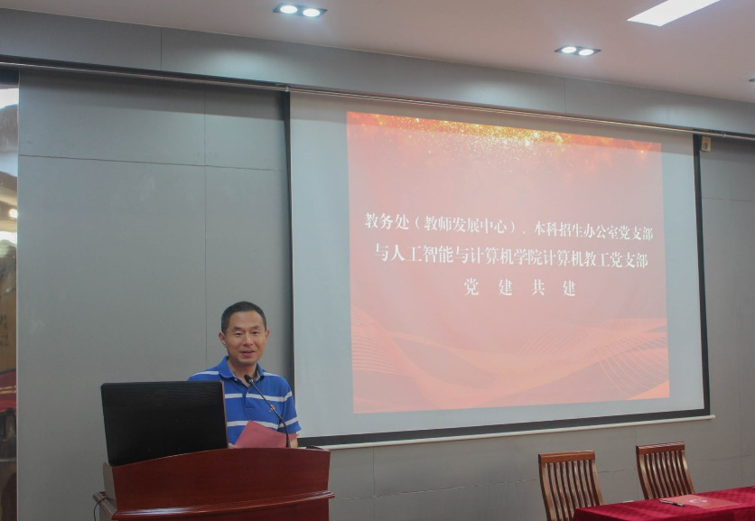 7月5日下午,人工智能与计算机学院计算机教工党支部与教务处(教师发展中心)、本科招生办公室党支部在人工智能与计算机学院B310会议室开展支部共建。人工智能与计算机学院党委书记张华,副院长(主持工作)方伟,教务处副处长吴宝锁,人工智能与计算机学院副院长、计算机教工党支部书记宋威,教务处(教师发展中心)、本科招生办公室党支部副书记聂晨曦,以及两个党支部的全体党员参加了此次活动。