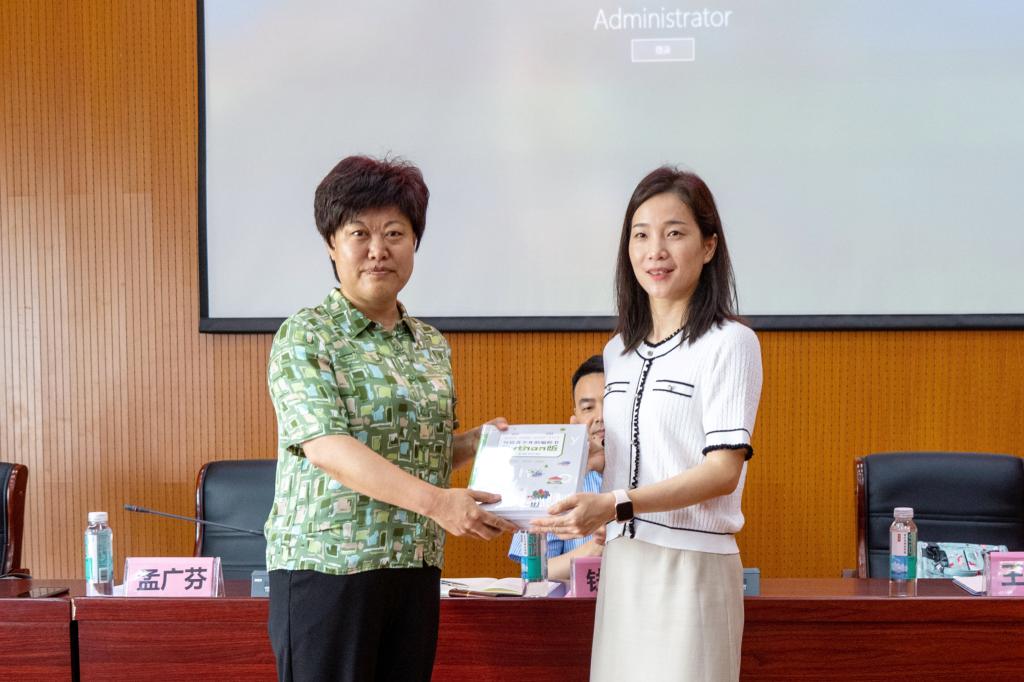 钱鹏江介绍了学院的教育教学情况,并感谢陵城区为学院学生提供宝贵的社会实践机会。他指出,此次校地双方合作建立大学生社会实践活动基地,是学习贯彻习近平新时代中国特色社会主义思想主题教育的重要举措,也是实践育人的重要载体。学院长期以来根据政府、学校、乡村等实际需求,找准服务“发力点”,充分发挥学院专业优势,有效整合资源,将学院品牌社会实践项目走深走实。随后,双方领导共同为陵城区科普实践基地揭牌;人工智能与计算机学院学工办主任兼分团委书记王园园向孟广芬赠送由人工智能与计算机学院陈璟老师主编的少儿编程书籍。