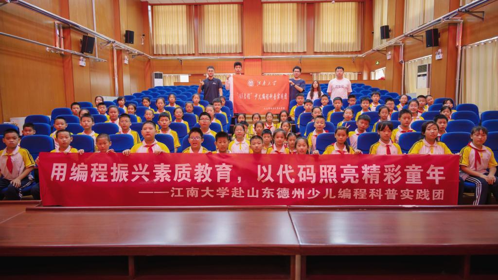 为深入学习贯彻习近平新时代中国特色社会主义思想,打造思政育人新阵地,助推人才培养和学生成长成才,江南大学人工智能与计算机学院“AI启程”少儿编程科普实践团于7月13日-15日赴山东省德州市陵城区开展少儿编程科普实践活动。